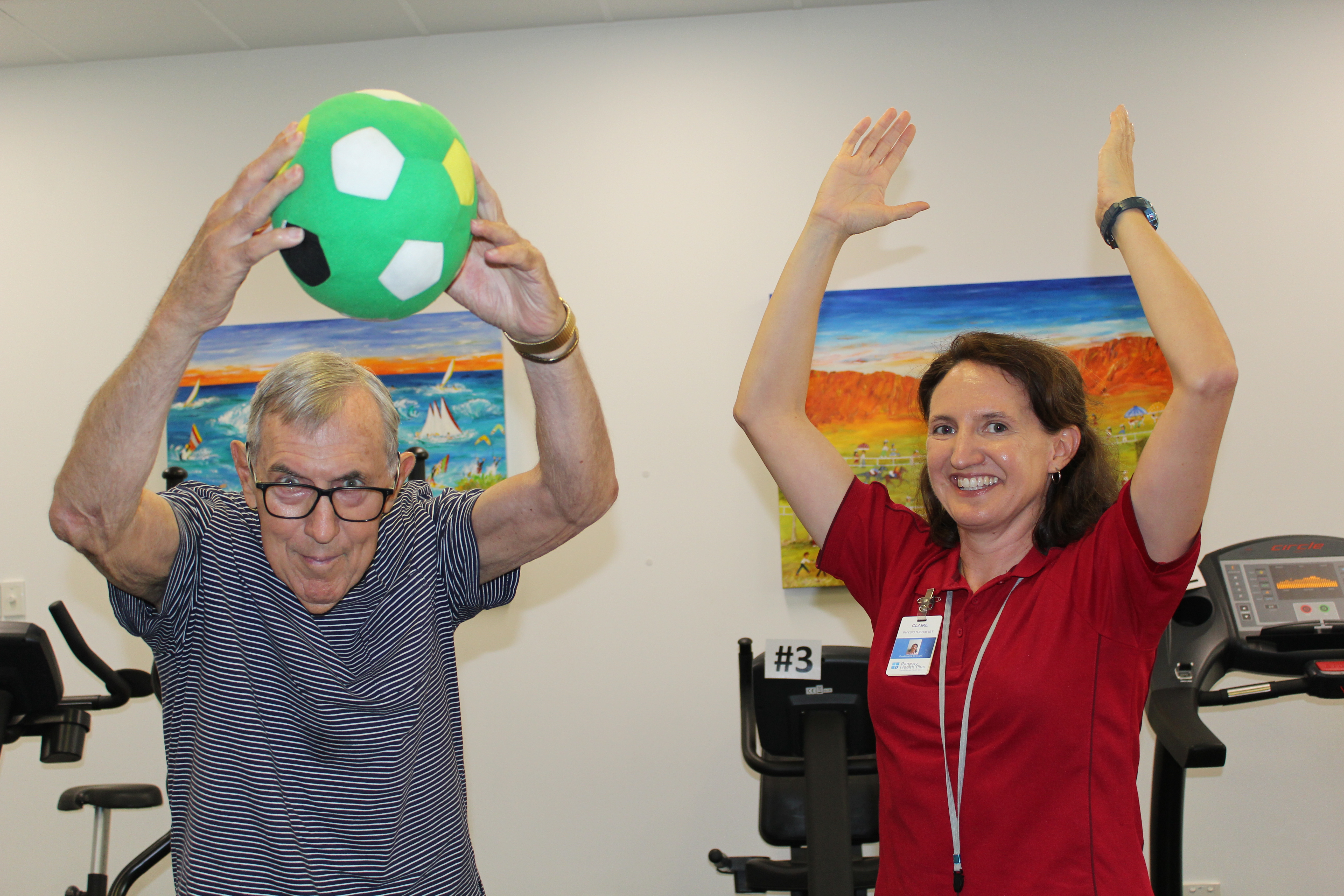 CAPS: Claremont resident John Haselhurst taking part in the PD Warrior program with Ramsay Health Plus physiotherapist Claire Tucak.